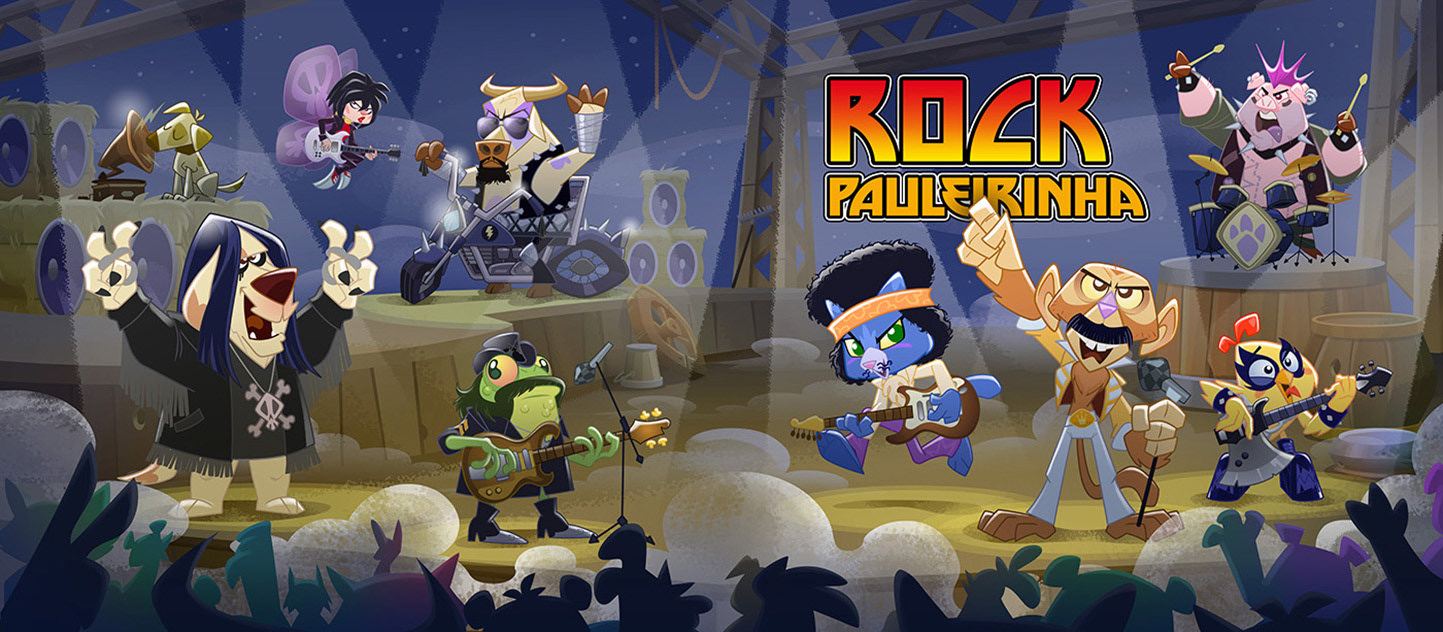 Banda animada que mistura clássicos do rock com músicas infantis.